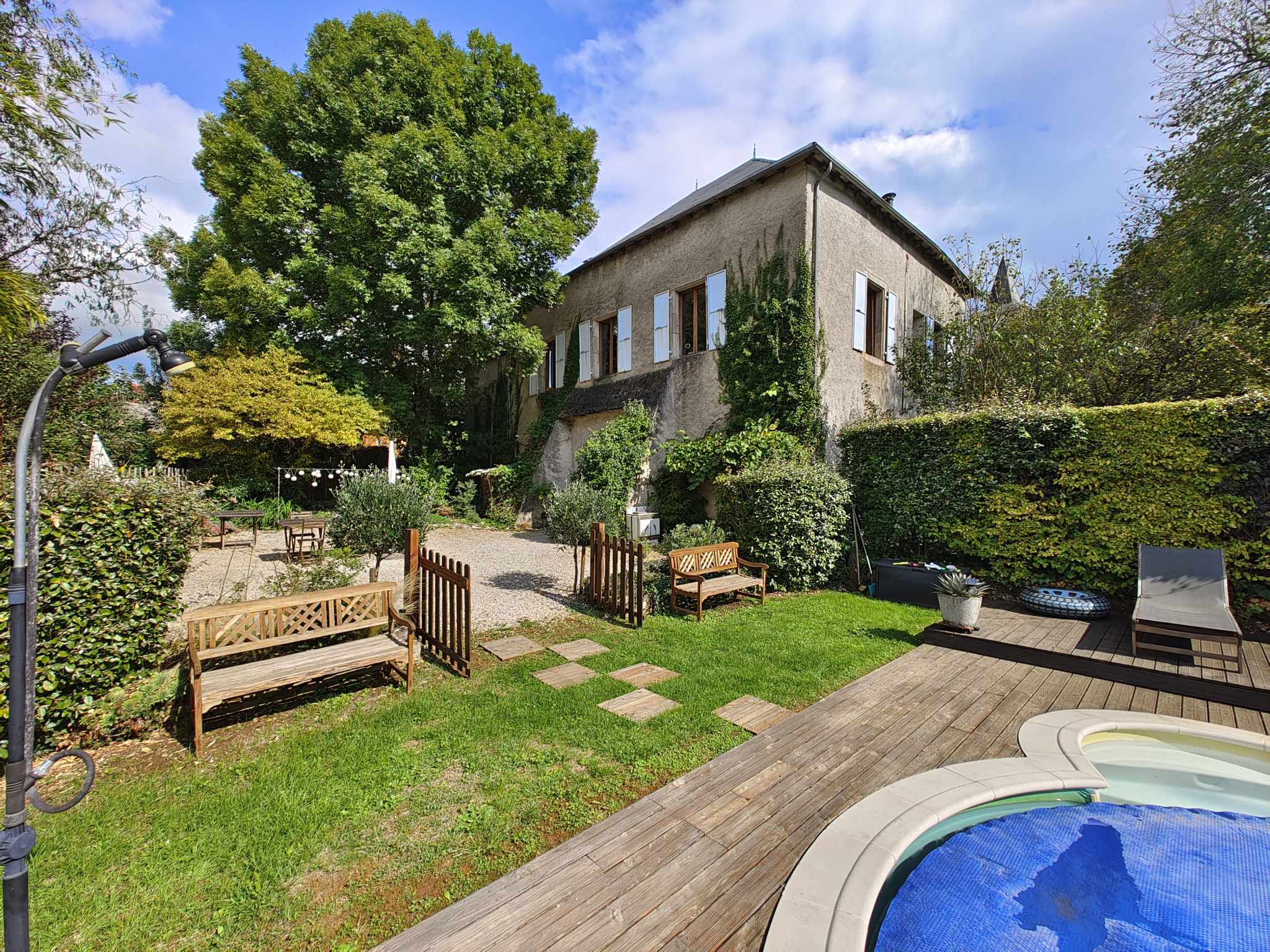 Buiten kunt u genieten van een fraai aangelegde privétuin met een ontspanningshoek, een zwembad en een eethoek , aangevuld met een terras en een ruime garage , die comfort en functionaliteit bieden in het dagelijks leven.