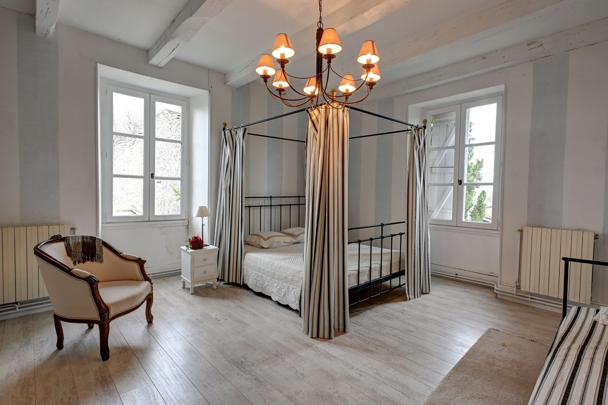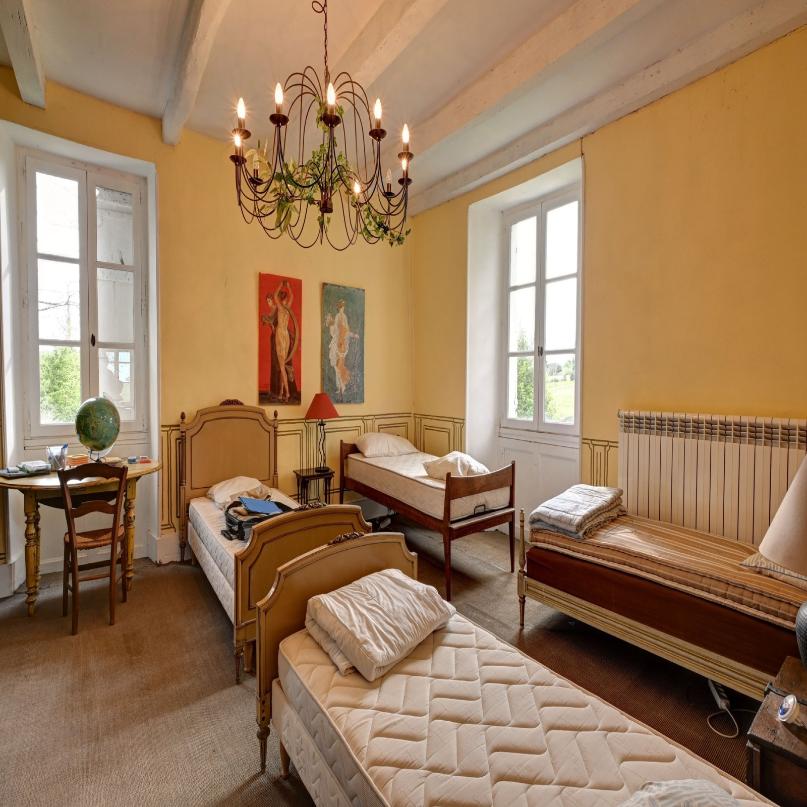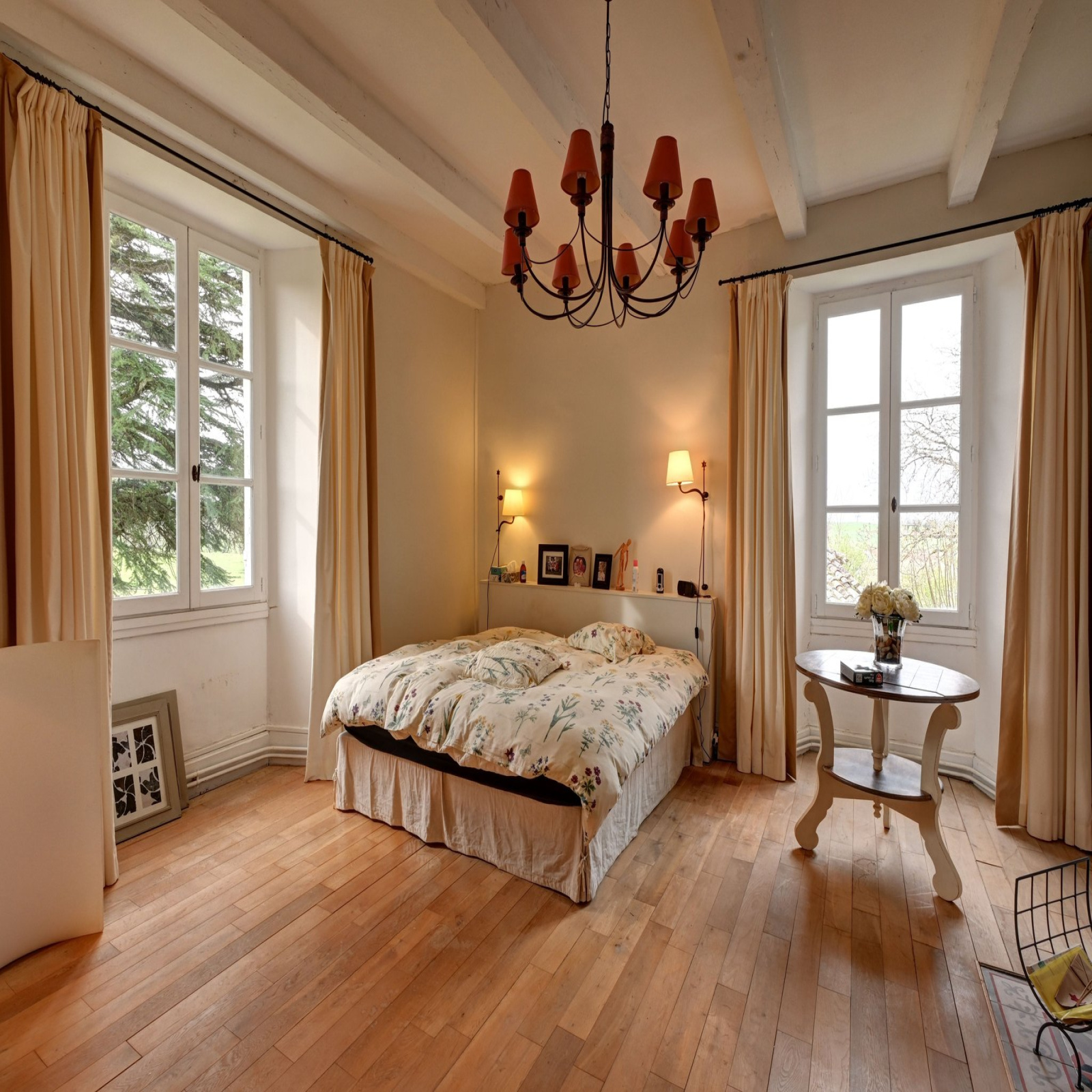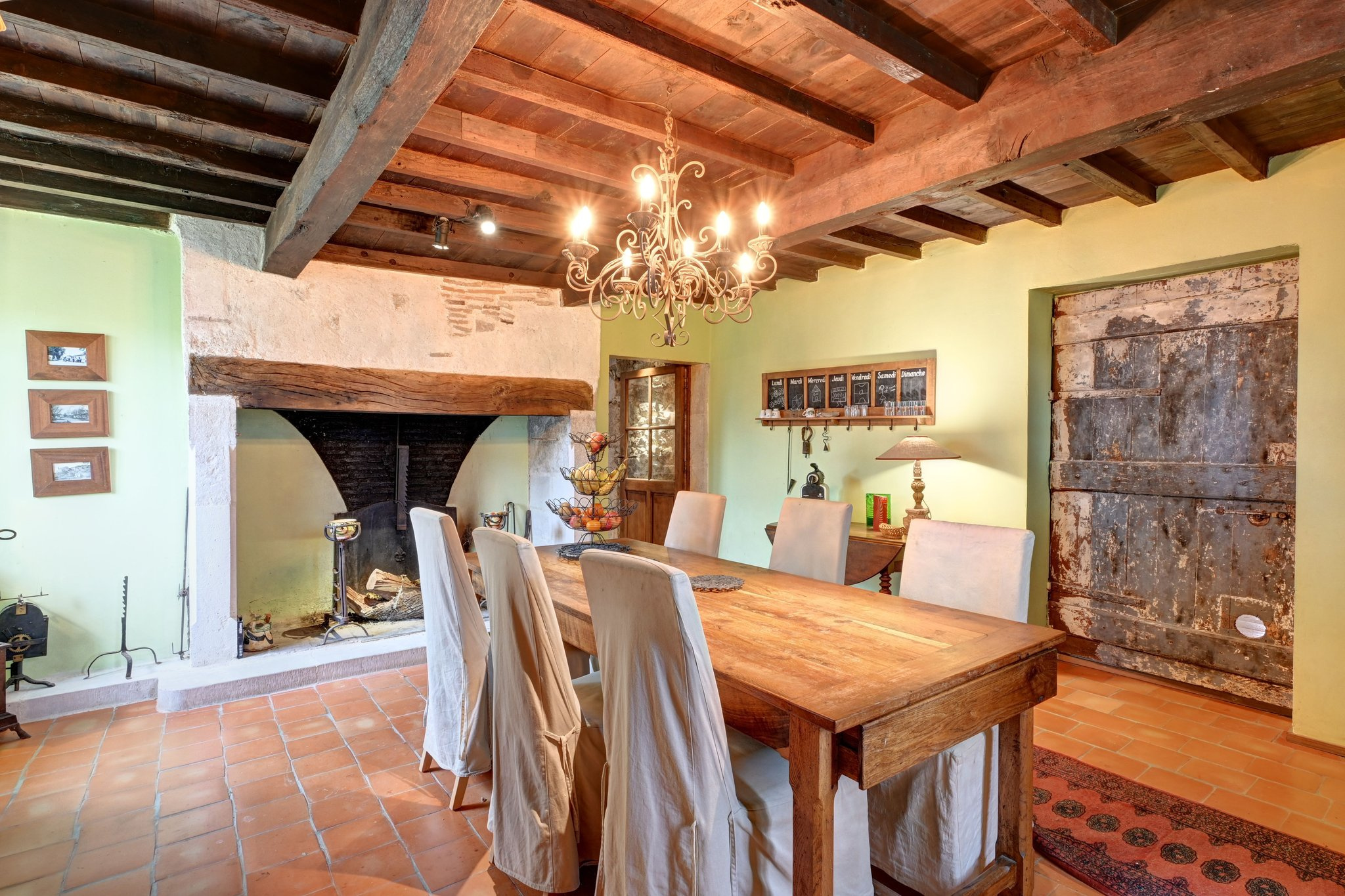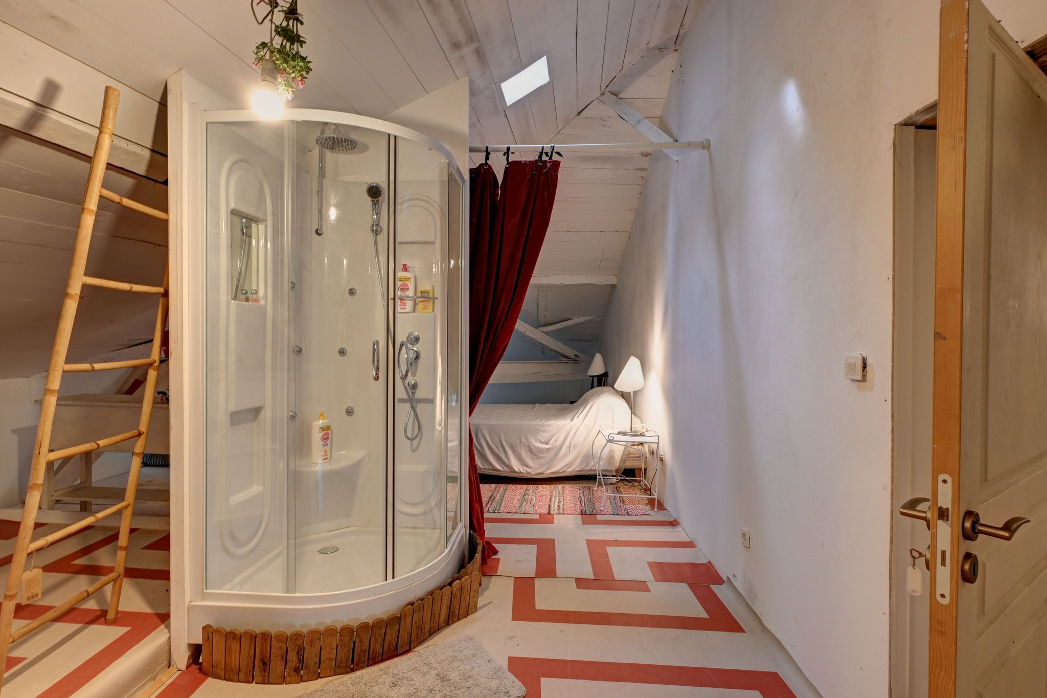 Gelegen in een rustige en groene omgeving, heeft het huis al zijn authenticiteit en charme behouden, met zijn zichtbare balken en originele terracotta vloeren. Het bestaat uit een prachtige hal, een woonkamer met een stenen open haard, een ingerichte keuken van 22,50 m², een bijkeuken van 25 m² en een toilet op de tussenverdieping. Boven leidt een ruime hal naar vier ruime slaapkamers en een badkamer met douche. Op de bovenste verdieping maken een grote slaapkamer van 40 m² met een eigen badkamer met douche, een slaapkamer van 15 m² en een in te richten zolder van 40 m² (geïsoleerd) het geheel compleet.