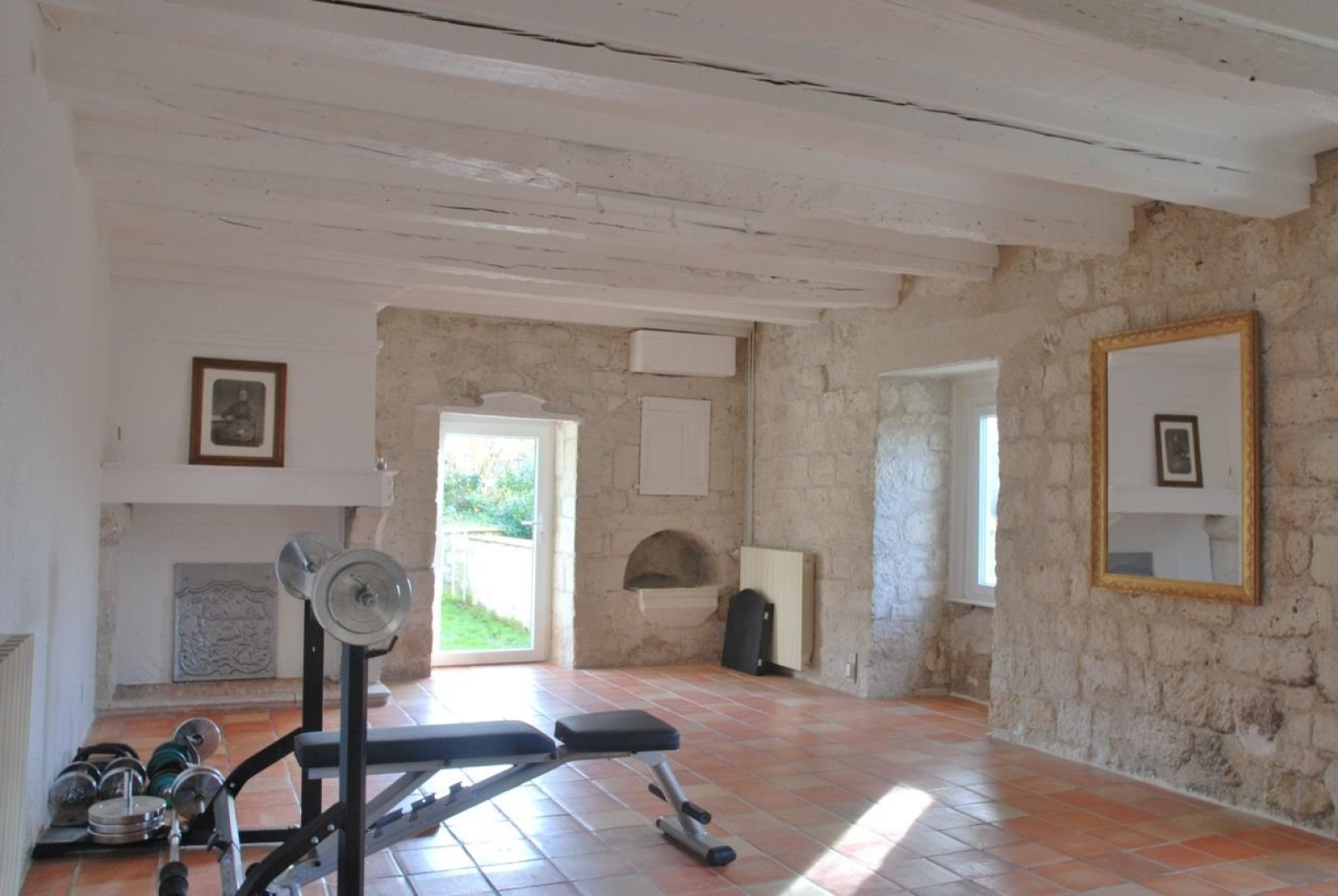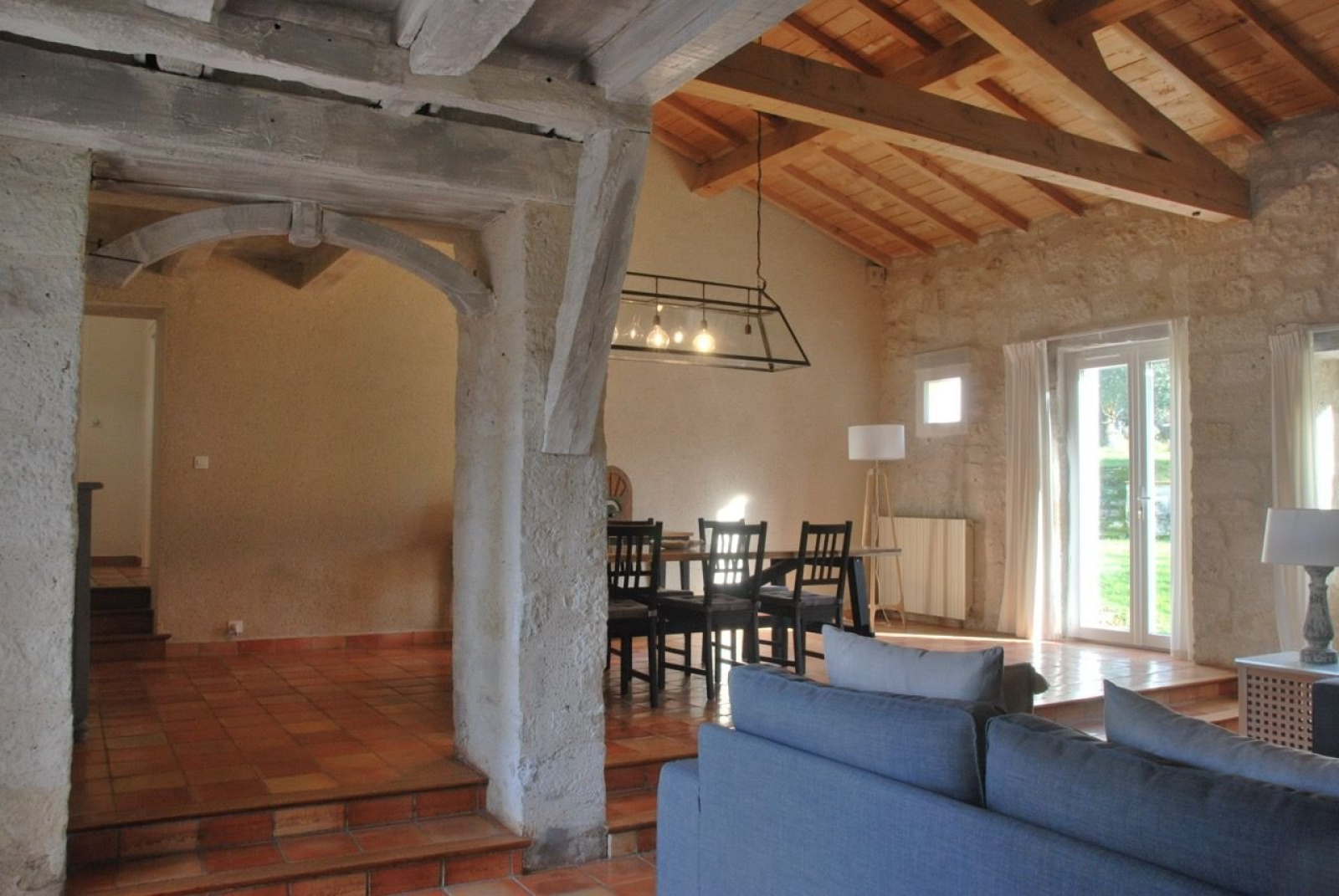 Naast de toplocatie is het landgoed instapklaar. De woning is volledig gerenoveerd met hoogwaardige materialen en biedt een uitstekende energie-efficiëntie. Op de begane grond bevindt zich een prachtig overdekt betegeld terras met boogvormige openingen. Vanuit de hal heeft u toegang tot de gloednieuwe keuken, voorzien van ovens en kookplaten. Een ruime bijkeuken completeert de keuken. Aansluitend is er een volledig open woonkamer met eethoek en verderop de zithoek bij de houtkachel. Een tweede woonkamer kan gebruikt worden als slaapkamer, kantoor, werkplaats, enz. Een slaapkamer met douche en apart toilet.