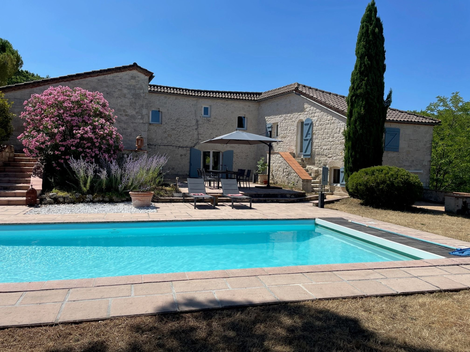 Een grote schuur in uitstekende staat. Een prachtig park met mediterrane planten. Een groot terras aan het zwembad biedt een schitterend uitzicht. Een wandelpad leidt naar het meer van Bajamont.