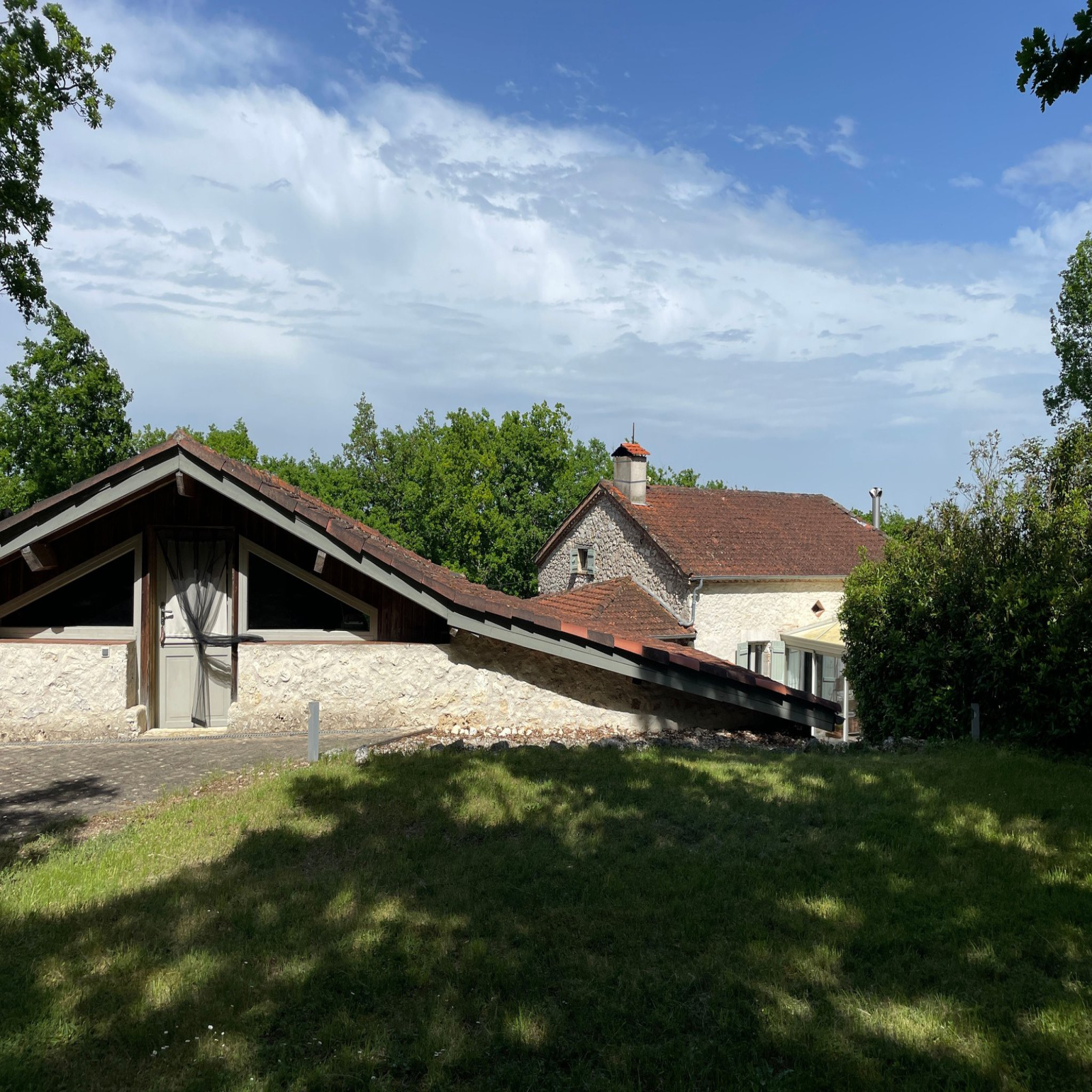 In de regio Lot-et-Garonne, aan het einde van een lange privéweg die naar een groene omgeving leidt, ontdekken we een charmant stenen huis met een verbouwde schuur op de rots. Hier zijn er geen buren, totale privacy omringd door eikenbomen. Het terrein wordt omringd door een prachtig terrein met weilanden en een vlak terrein met een zwembad. Op 12 minuten van Laroque-Timbault, 20 minuten van Villeneuve-sur-Lot en 30 minuten van Agen (TGV-station).