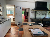 De mooie keuken met eethoek is voorzien van een houtkachel, centrale verwarming (gas) en een gasfornuis. Vanuit de keuken heeft u toegang tot twee terrassen.