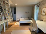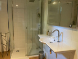 Twee slaapkamers en een badkamer. Op de begane grond bevindt zich een gastenslaapkamer met douche.