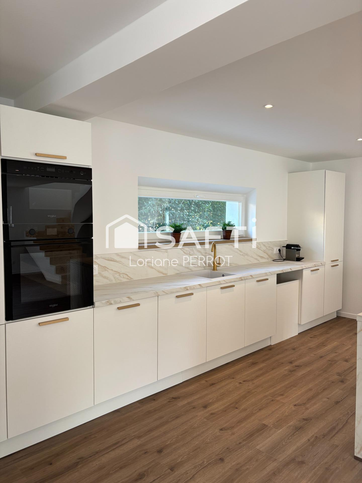 Bij binnenkomst treft u een woonruimte van 80 m² aan, die baadt in natuurlijk licht dankzij grote ramen die uitkijken op de buitenlucht. De moderne en functionele open keuken loopt naadloos over in een zeer ruime bijkeuken, die veel opberg- en opbergruimte biedt, wat vooral in het dagelijks leven erg handig is.