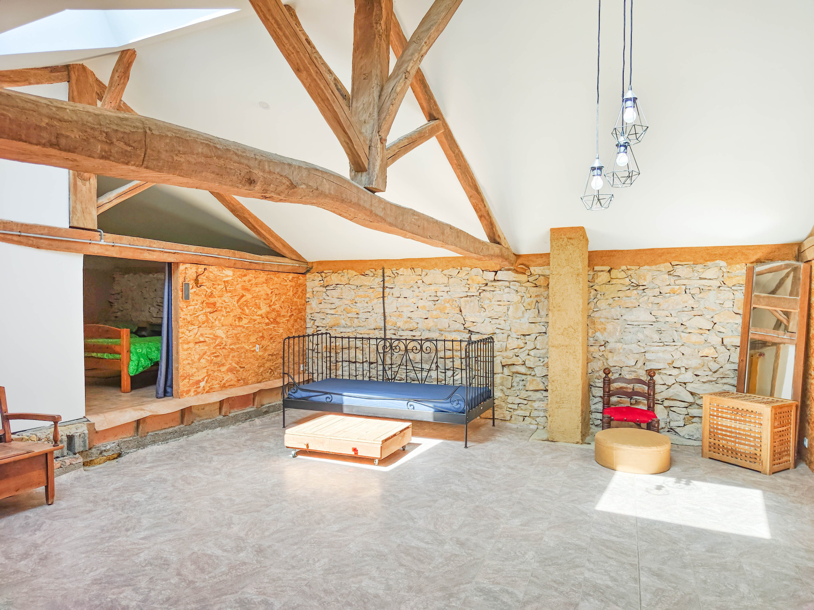 Bovenverdieping: een mooie ruimte (momenteel speelkamer) met relaxhoek van 36 m²