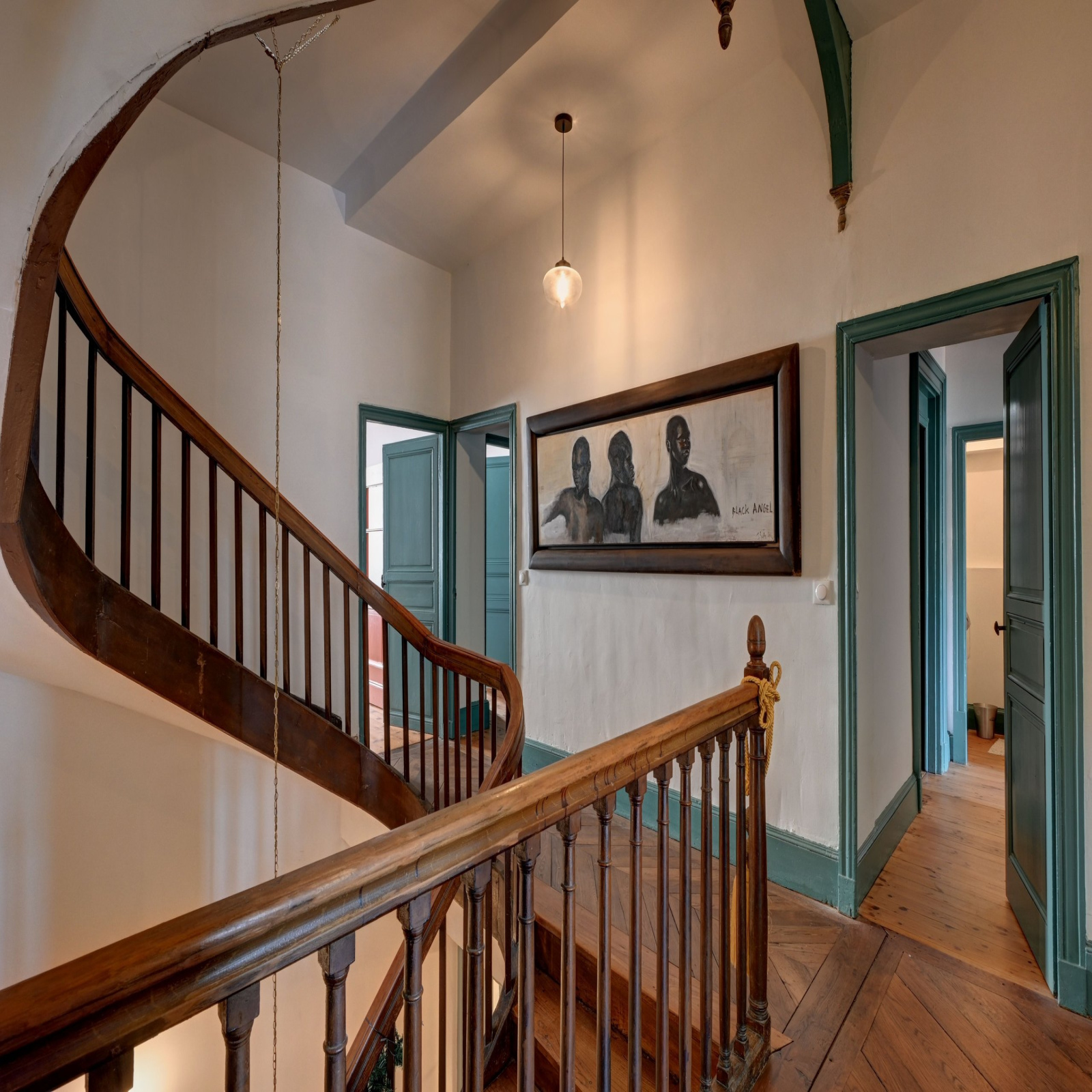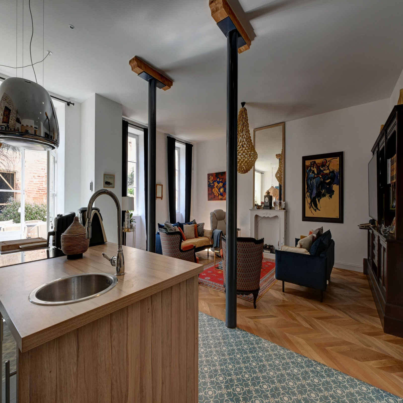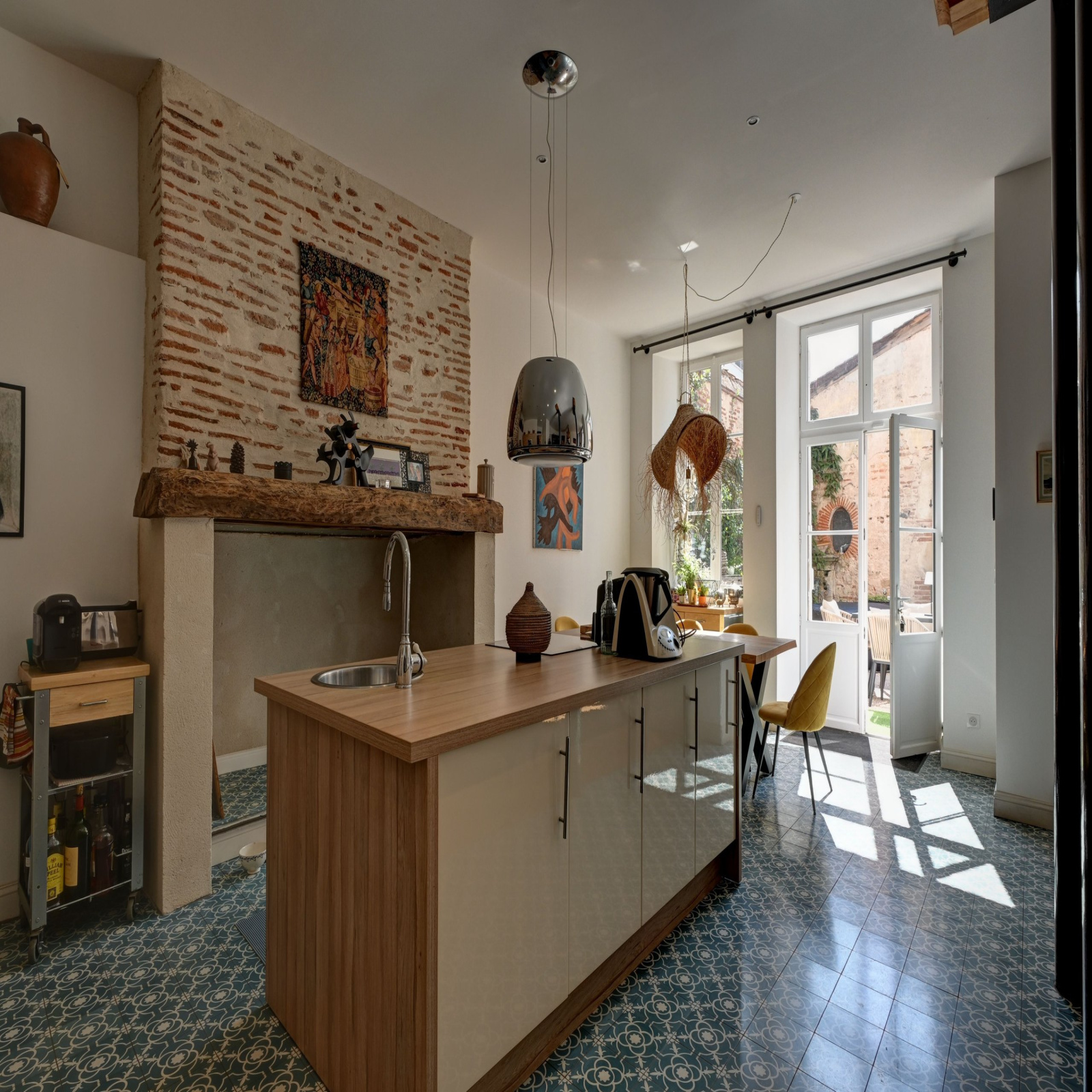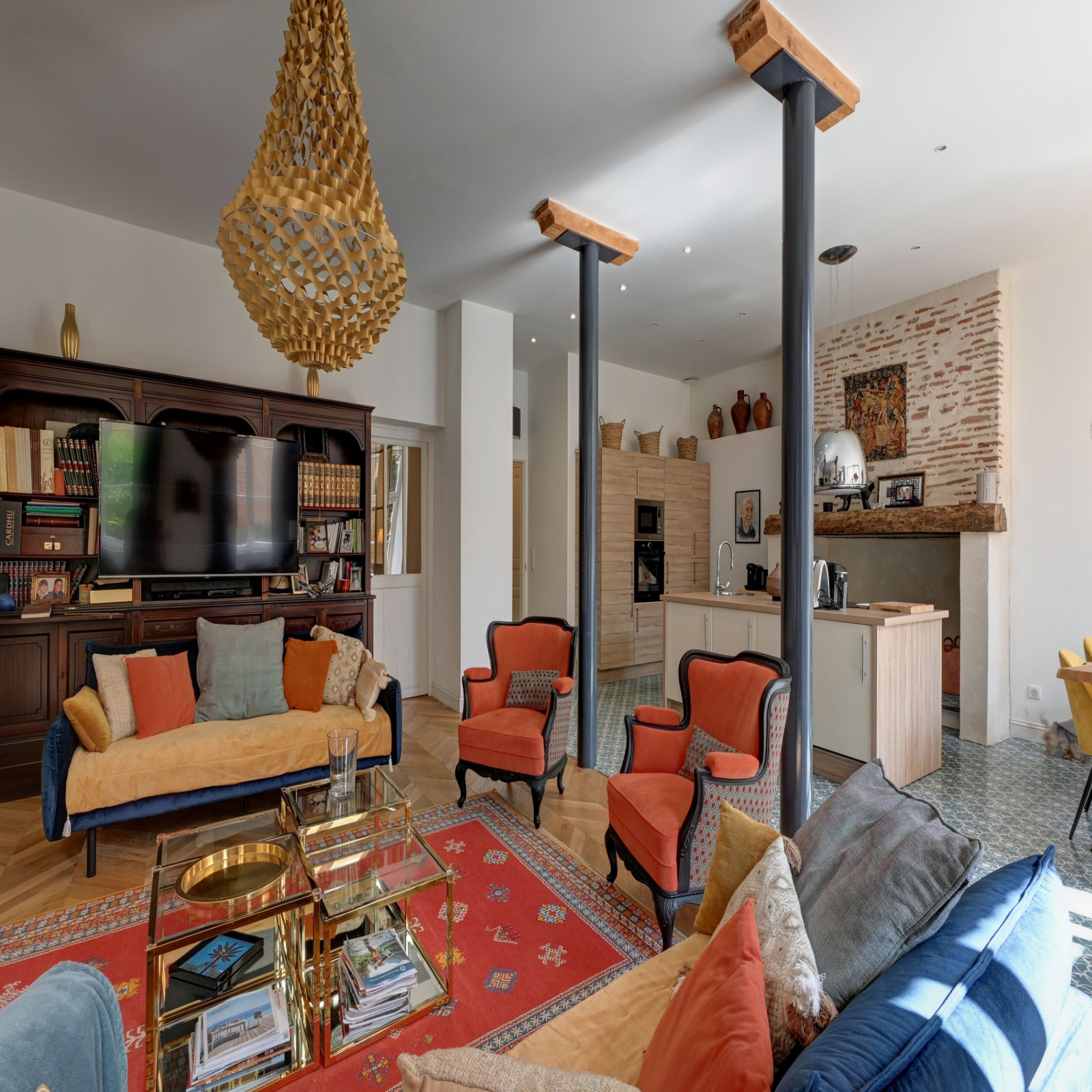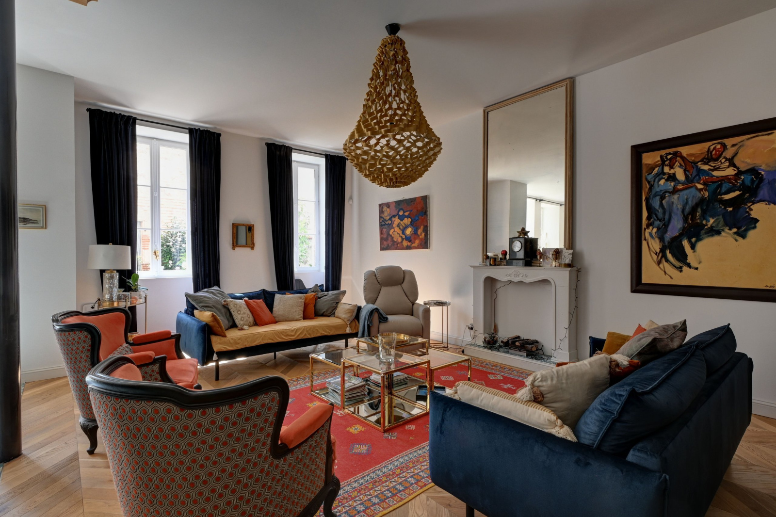 In het hart van de vestingstad Villeneuve-sur-Lot presenteren wij een prachtig herenhuis, smaakvol gerenoveerd in 2020/2021. Het combineert perfect de charme van het oude - zichtbare stenen, bakstenen, houten vloeren, open haard - met een eigentijdse, nette en elegante renovatie.