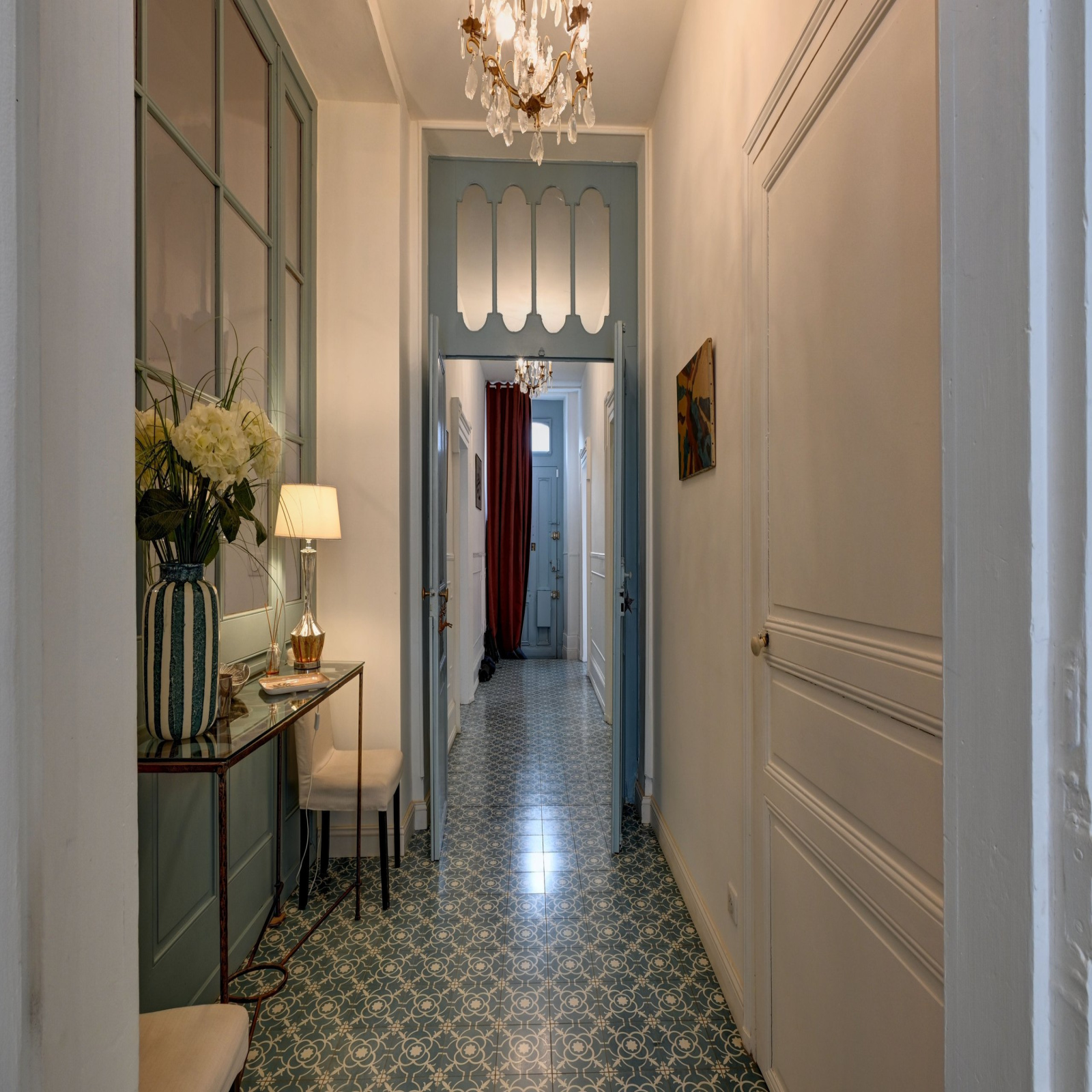 Bij binnenkomst wordt de toon gezet met een ruime en gezellige hal. Vervolgens ontdekken we een grote slaapkamer met dressing, een lichte werkkamer, een badkamer met ligbad, inloopdouche en toilet, en een discrete wasruimte. De woonkamer, badend in het licht, is een echte favoriet: met een ingerichte en uitgeruste keuken, een zithoek en een prachtige visgraatparketvloer. Deze ruimte geeft direct uit op een prachtig terras van circa 60 m², voorzien van een elektrisch zonnescherm, en geeft toegang tot de twee garages, waarvan één met een gemotoriseerde deur.
