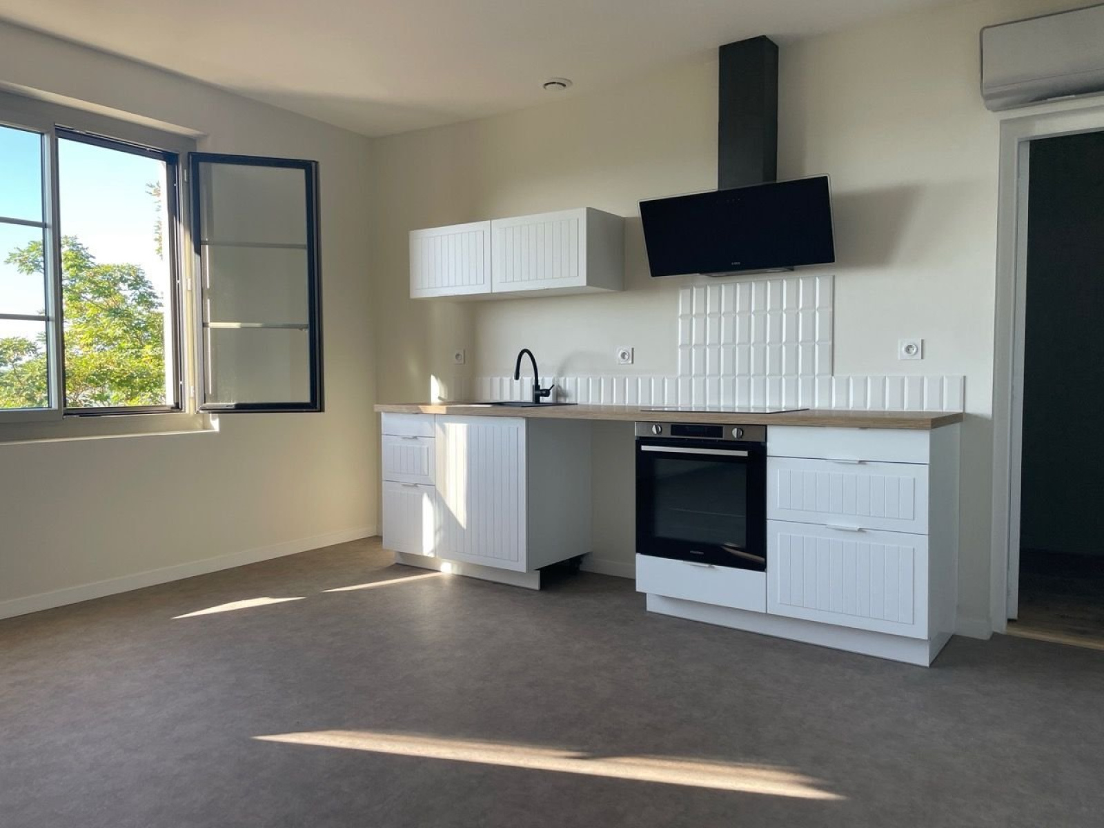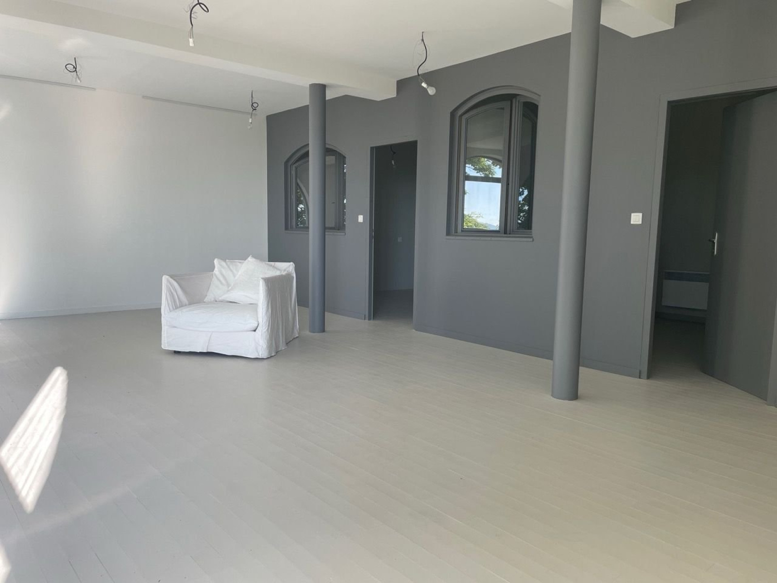 Het gebouw omvat een eerste vierkamerappartement (T4) met een totale oppervlakte van 141 m² en een privé, beveiligd terras van 78 m² met uitzicht over de vallei, direct toegankelijk vanuit de woonkamer. Alle openslaande deuren in de 75 m² grote woon-/eetkamer, die is voorzien van een houtkachel, kunnen worden geopend. Het appartement beschikt verder over een ingerichte keuken van 10 m², een hal die toegang geeft tot twee ruime slaapkamers en een kantoor, evenals een badkamer met wastafel, toilet, inloopdouche, een tweede toilet en een aparte wastafel.