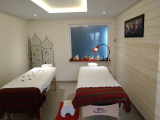 - Een voormalige schuur omgebouwd tot spa met receptie, massageruimte, toiletten, verwarmd thalassotherapiezwembad, sauna, hamam, fitnessruimte, kantoor...